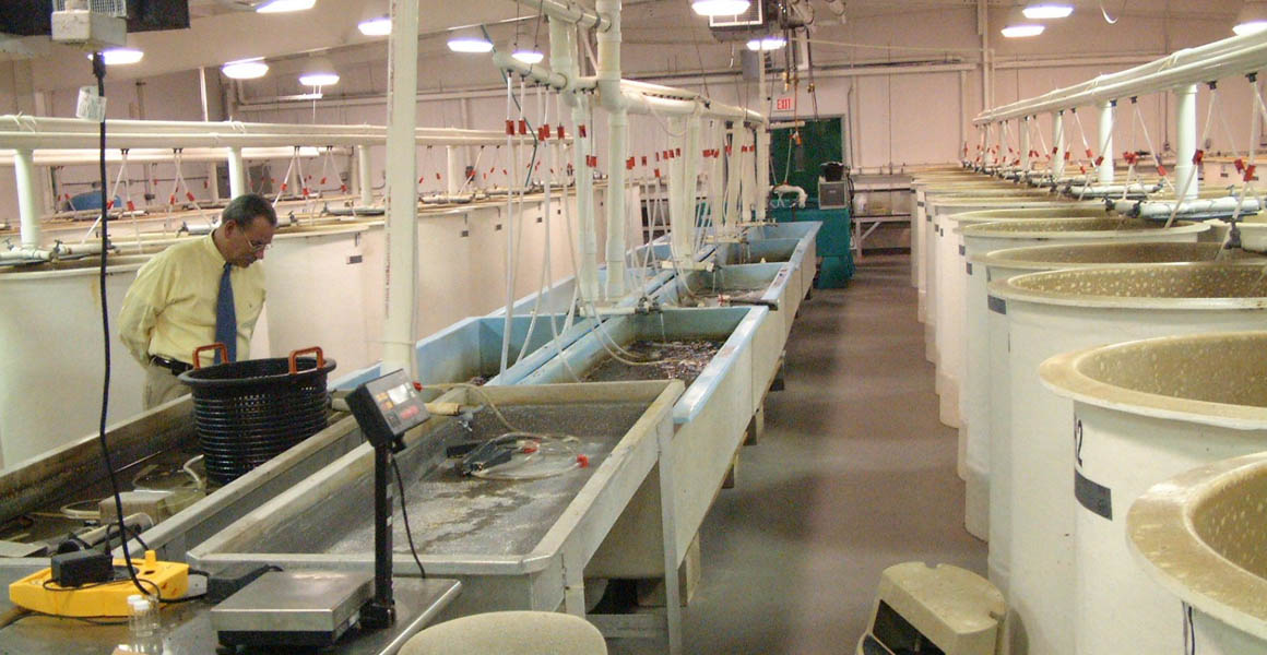 The Thad Cochran National Warmwater Aquaculture Center (NWAC) facilities include an office building with 21 analytical labs (27,000 ft2), an aquarium building (6,000 ft2), a nutrition lab (8,000 ft2), a pathogen-free fish holding facility, numerous wet labs, a hatchery building, a load-out/sorting building, and an equipment storage compound. What makes the NWAC unique is its 257 ponds ranging from 0.1 to 11 acres. These ponds total 294 acres and allow researchers to take concepts tested in small ponds and validate them in commercial-size settings.